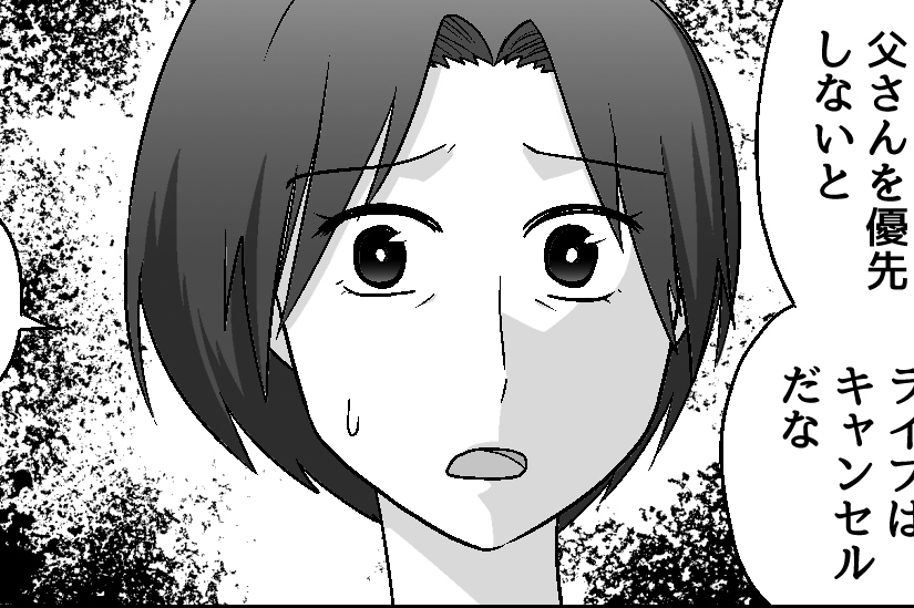 <瀕死の義父とライブ、優先は?>記念ライブの2週間前「キャンセルしろ!」夫の命令【第1話まんが】