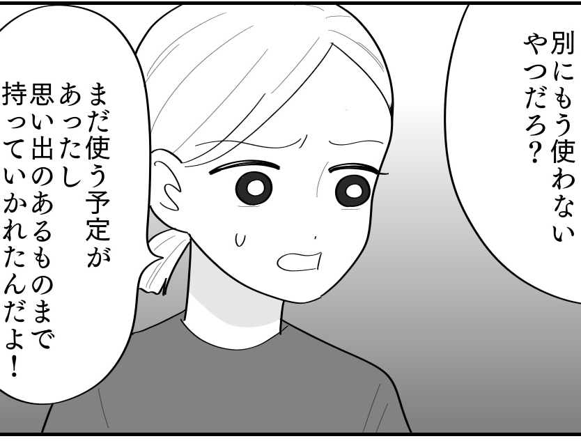 義母は「子どもにとって住環境がどれだけ大事か」と熱心に語り、いろいろな物を持っていってしまいました。赤ちゃんの頃の思い出が詰まった、おもちゃやベビー服まで……。けれど私にはもはや、義母の行動を止める気力もありませんでした。