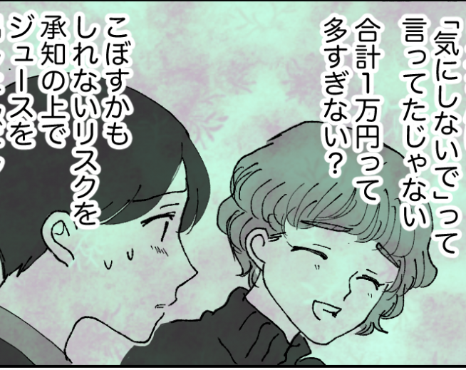 2−2−2私はルリコさんからのメッセージを読んで、驚きました。リエさんはいいと言ってくれたのに、クリーニング代を払おうと言うのです。しかも合計1万円も……!? もちろん汚してしまったのは本当に申し訳ないと思っていますが、正直なところ、少しやりすぎではないかと感じてしまいました。
