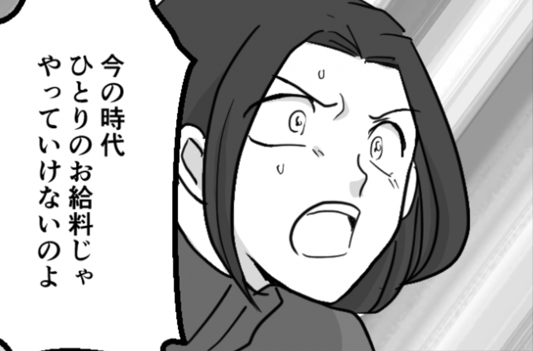 挙句のはてに夫まで義母の肩をもつしまつ。Bさんが「なら毎月黒字になるように頑張ってね。将来のリツの進学費用も貯めたいし」と言っても夫は「節約とかして頑張れよ」と答えるばかり。怒ったBさんは年収が低いことを伝えると、夫は初めて現実を知り言葉を失いました。