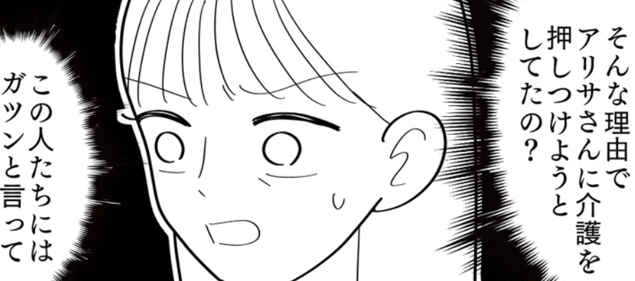 そんななか義父が入院し、軽い介護が必要になってしまいました。帰り道、義母は突然「介護はアリサちゃんにやってもらうからね」と言い放ちます。義兄夫婦は実家の近くに住んでいるのに、なぜ2時間も離れた自分が?