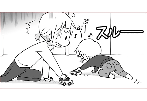 息子がミニカーを片手で転がして「ぶーぶー」と遊び始めたので、