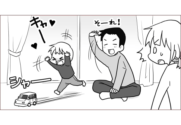 男の子の遊び方は、同じく男の子の遊びを経験してきた旦那に頼るのが一番、ということですね!