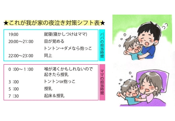 とはいえ、パパは6時30分に起きて出勤の準備をするため、仕事に支障が出ないように、深夜1時前後にママと交代しようということにしました。