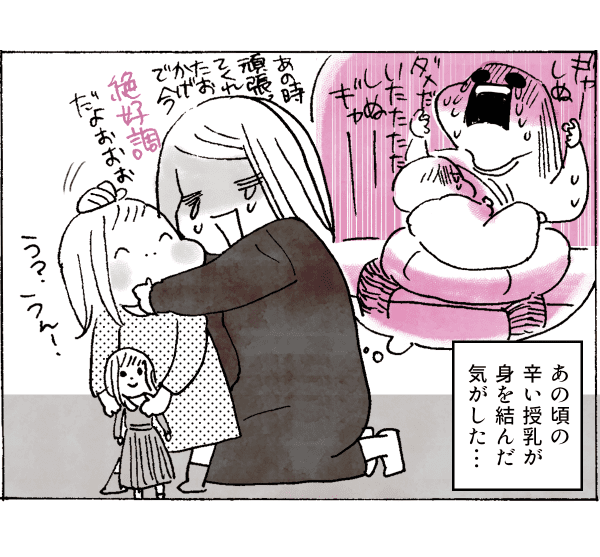 (のちに軽い乳アレルギーがあることが分かりました)そんなわけで一人目は1歳半ほどまで、泣きながら完母で育てました。今思い返せば、おっぱいトラブルは最初の3ヶ月間だけの短い期間だったのですが、当時は終わりの見えない地獄のような日々でした……。