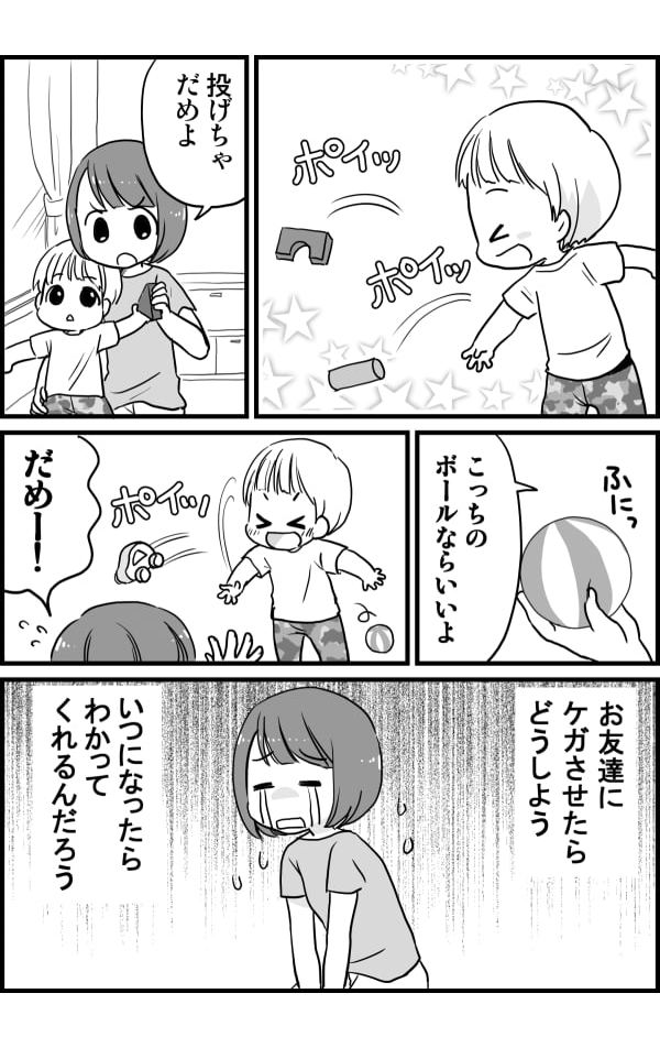 いつになったらわかってくれるんだろう……と先が見えず不安になりました。お友だちに怪我をさせたらどうしよう、と私の余裕がなくなって、児童館へ行かなくなった時期もあります。