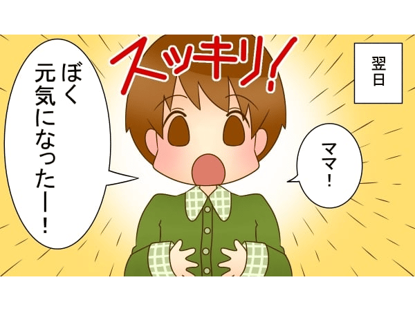 そして次の日。「元気になった!」わが子が起きぬけに言いました。幸いにも重傷化せず、病院にいっても整腸剤をいただいたくらいで、思ったよりも早く回復に向かっていました。よかった!