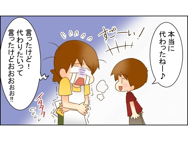 「ママ、代わってあげたいって言ってたけど、本当に代わったねー! 願いが叶ったねー!」