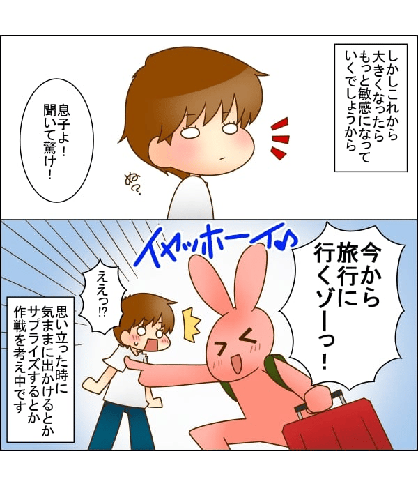 息子はこれから、もっと人の気持ちに敏感になっていくでしょう。その時にもできるだけ息子が万全の体調で外出を楽しめるように配慮したいです。