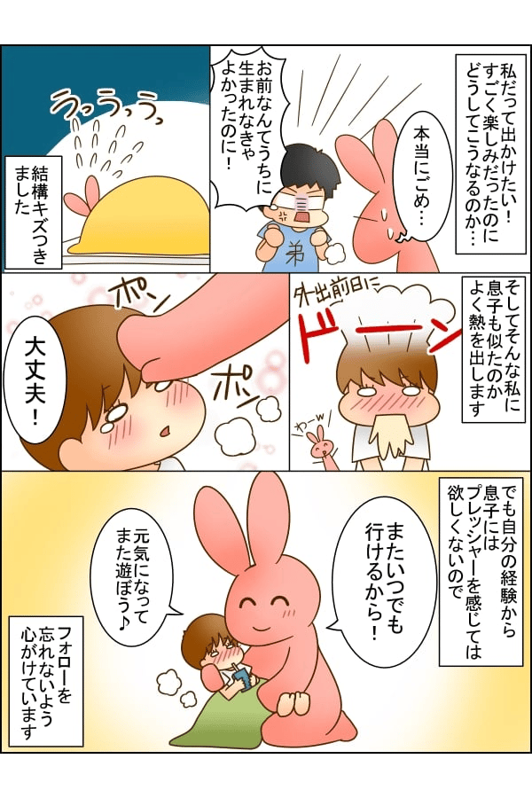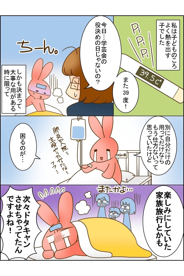 私が子どもの頃は本当に悲しい思いをしましたし、イベントが近づくとまた熱を出したらどうしようという不安がつきまとうようになってしまいました。
