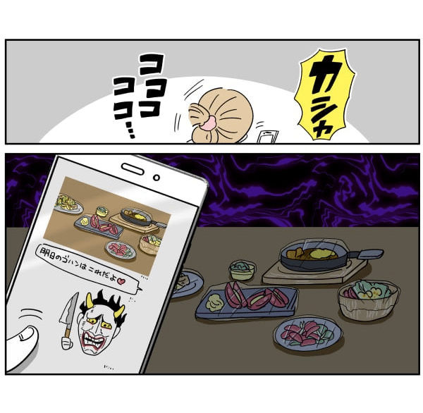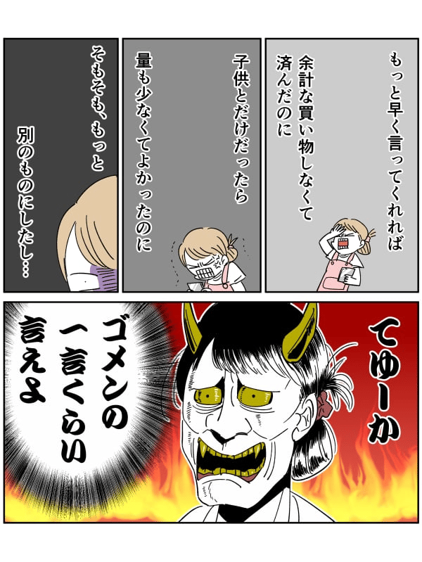 ひとしきり「イライラ」し終わった私は深呼吸をし、おもむろにラップを取り出し、旦那用に用意した夕飯にかけ冷蔵庫にしまいます。そして……
