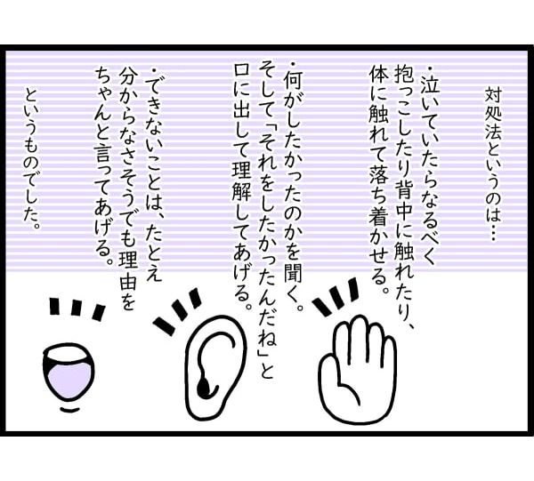 保健師さんに癇癪の対処法を聞いていたのですが、その実践を見れるとは思ってなかったので、ビックリでした。