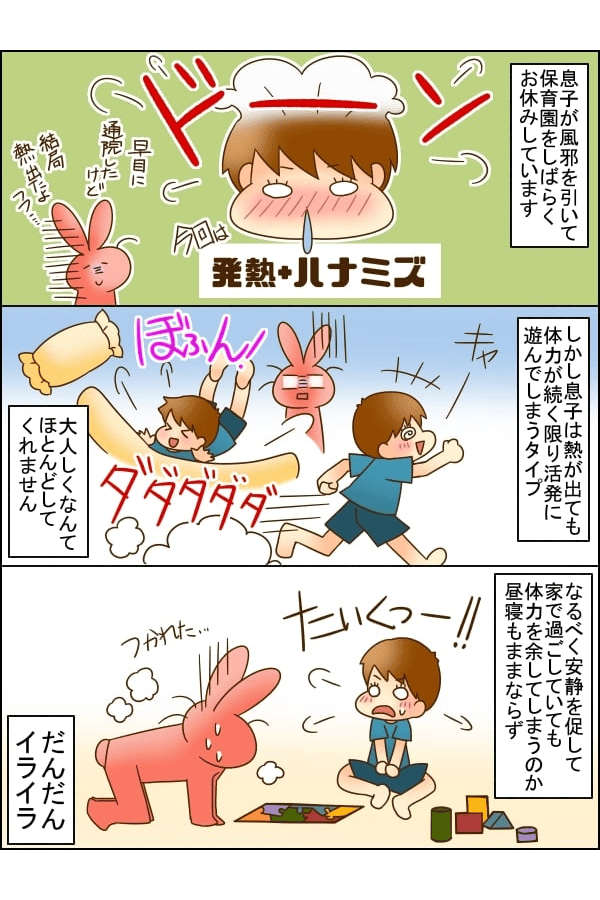 息子は暇でだんだんイライラ。私もそのイライラに付き合ってクタクタ。