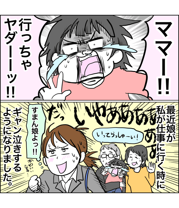 元々ママっ子である娘ですが、2歳を過ぎてから更にママっ子になりました。仕事に行くときは毎回泣かれてしまうので、娘が気付かないうちにコッソリと抜け出すことも。
