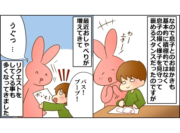 むしろ、例えばよく子どもとの遊びである「○○描いてー!」とかを急に言われても、対応しかねるどころか