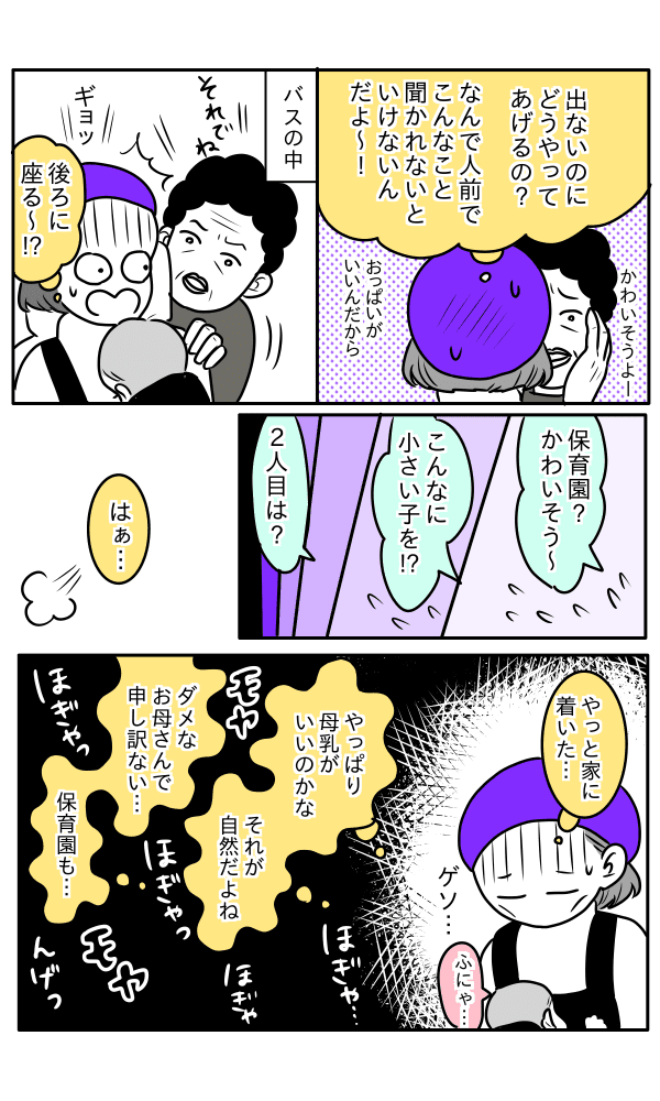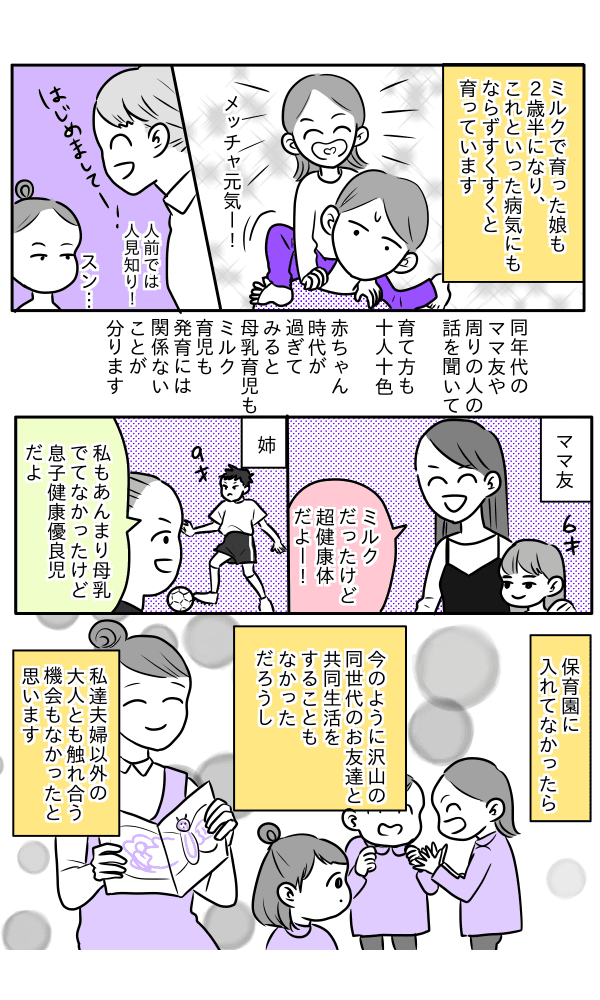 少なくとも、あのおばあさんに言われたように母乳じゃないから、保育園だから、子供がかわいそうってことはない! と自信を持って伝えたい。