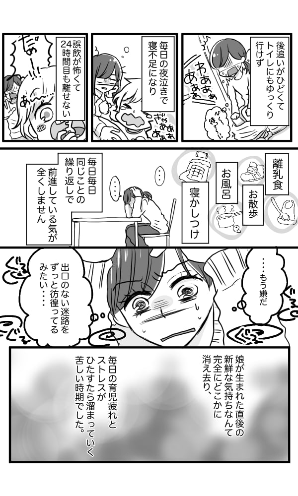 娘は、自分にとって初めての子ども。生まれた直後は、新鮮な驚きと感動に満ち溢れていました。可愛くて可愛くて仕方がなくて、頻回授乳や深夜のグズりで寝不足になっても全然辛くない! 自分が持てるエネルギーとモチベーションの全てを注いで、生まれたばかりの娘のお世話をしていました。