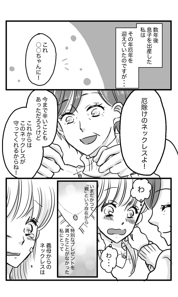 いつか私も息子にお嫁さんができた時には、義母と同じように娘にネックレスを贈り、嫁だけど娘として接していける優しさを持つ義母になりたいです。