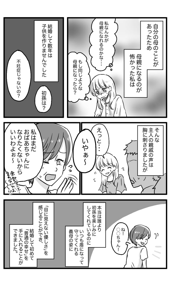 <毒親育ち>子どもを授かるのが怖かった私。義母が「母のぬくもり」を教えてくれました