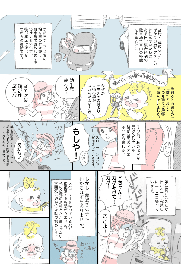 本物の鍵が大好きな乳幼児。しまった!娘が車内に閉じ込められた!助けて!