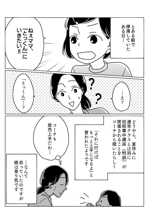 少人数制でいつもより丁寧に教えてくれる特訓に娘は毎日大満足。「今日もコーチに褒められたよ」とレッスンが終わる度に嬉しそう。子どもなりにできないことができるようになる実感もあったようです。娘の充実した様子に申し込んで良かったなと思っていました。