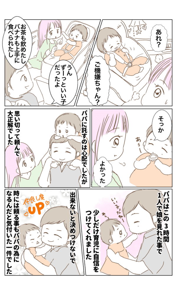 <頼られてパパは育つ?3時間の美容室から戻ったら旦那がイクメンに!