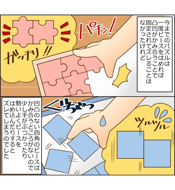 子どもの様子に合わせて、パズルピースの形もよく見て選んであげる必要があるみたいです。