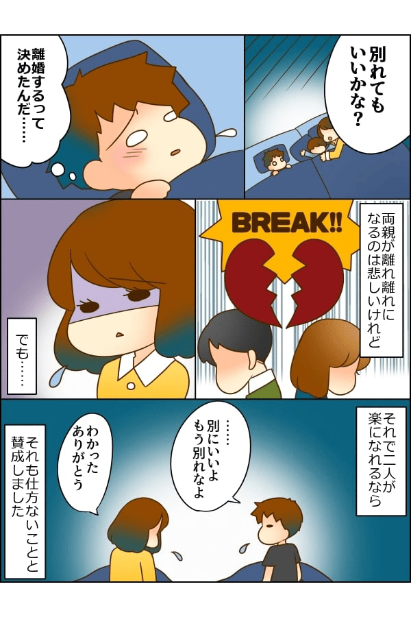 ただの愚痴が本気に変わったのだと感じました。私は、疲れている母を見て「別れていいよ」と答えました。