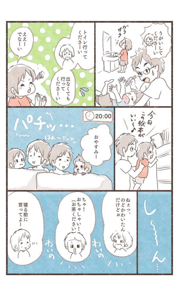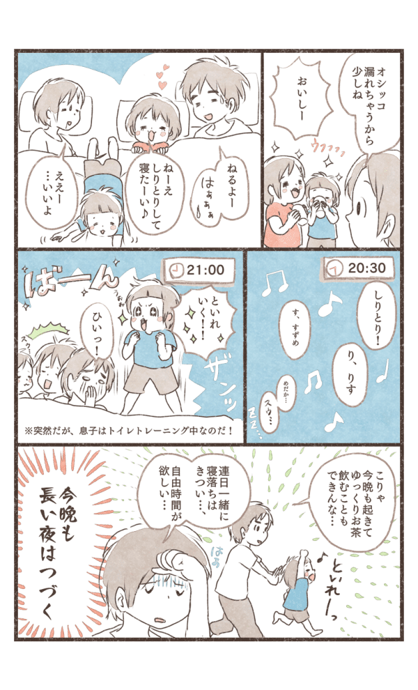 私も夫も子どもたちの就寝後、自分たちの趣味やのんびりする「自分の時間」というものを期待しながら毎日寝かしつけを行なっています。