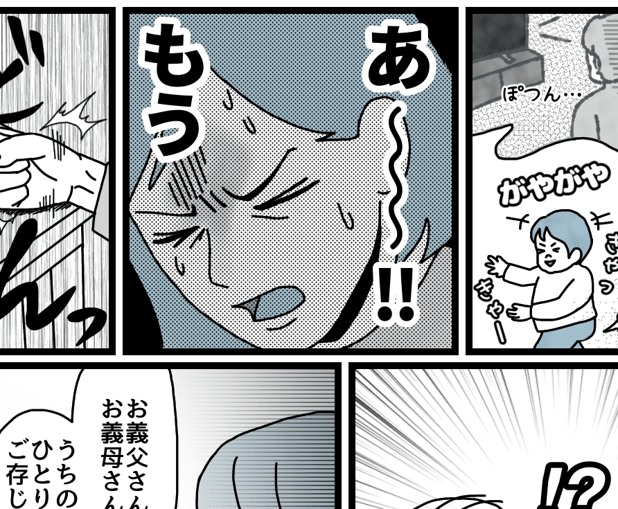 母にだって孫に囲まれたお正月を過ごさせてあげたい……。でも結局いつも旦那の激怒が怖くて言いなりになってしまう……。兄弟や義父とお酒を飲んでご機嫌な旦那。子どもたちは楽しそうに走り回り、笑い声。……でも、母は実家にひとりなんだ……。