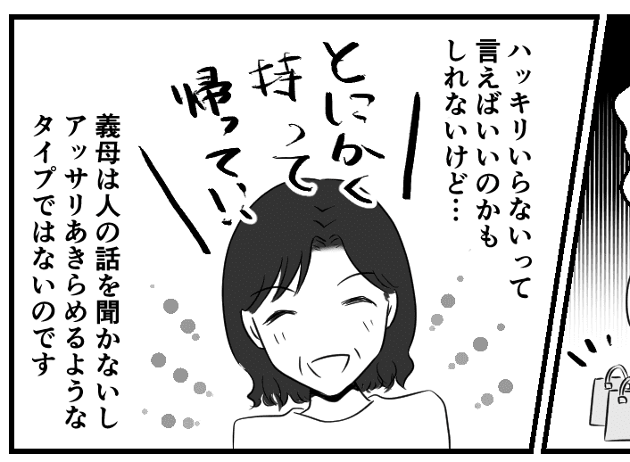 <義母お土産が多すぎ問題>「物をあげている自分が好き」説!ならば私の対応は……?【第4話まんが】