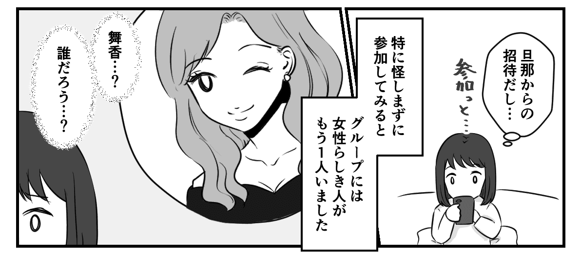 前回からの続き。ある日、旦那(直也)からグループLINEの招待がありました。グループには旦那以外に「舞香」という女性が。