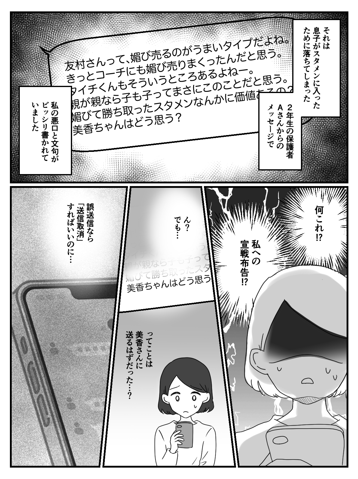 <ホントに誤爆?疑惑のメッセージ>レギュラー争いから親バトル?悪意あるメッセージ【第1話まんが】